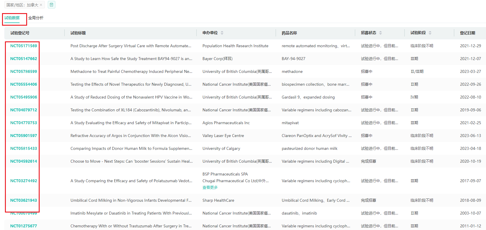 新增“加拿大”临床试验数据,为用户提供了更全面的临床试验信息获取渠道。数据库不仅使用户能够快速掌握加拿大地区的临床试验动态,还能帮助用户跟踪国外研究热点,一键追踪药物的国际化注册进程,是用户在立项调研、新药研究、临床试验研究等方面的重要助手。