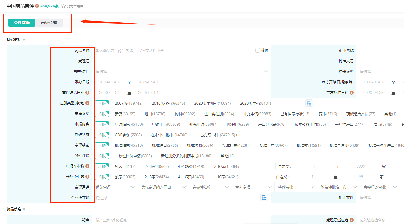 同时,数据库顶部固定的“条件筛选”与“高级检索”功能,支持用户根据具体需求进行精准检索,满足多样化和个性化需求。
