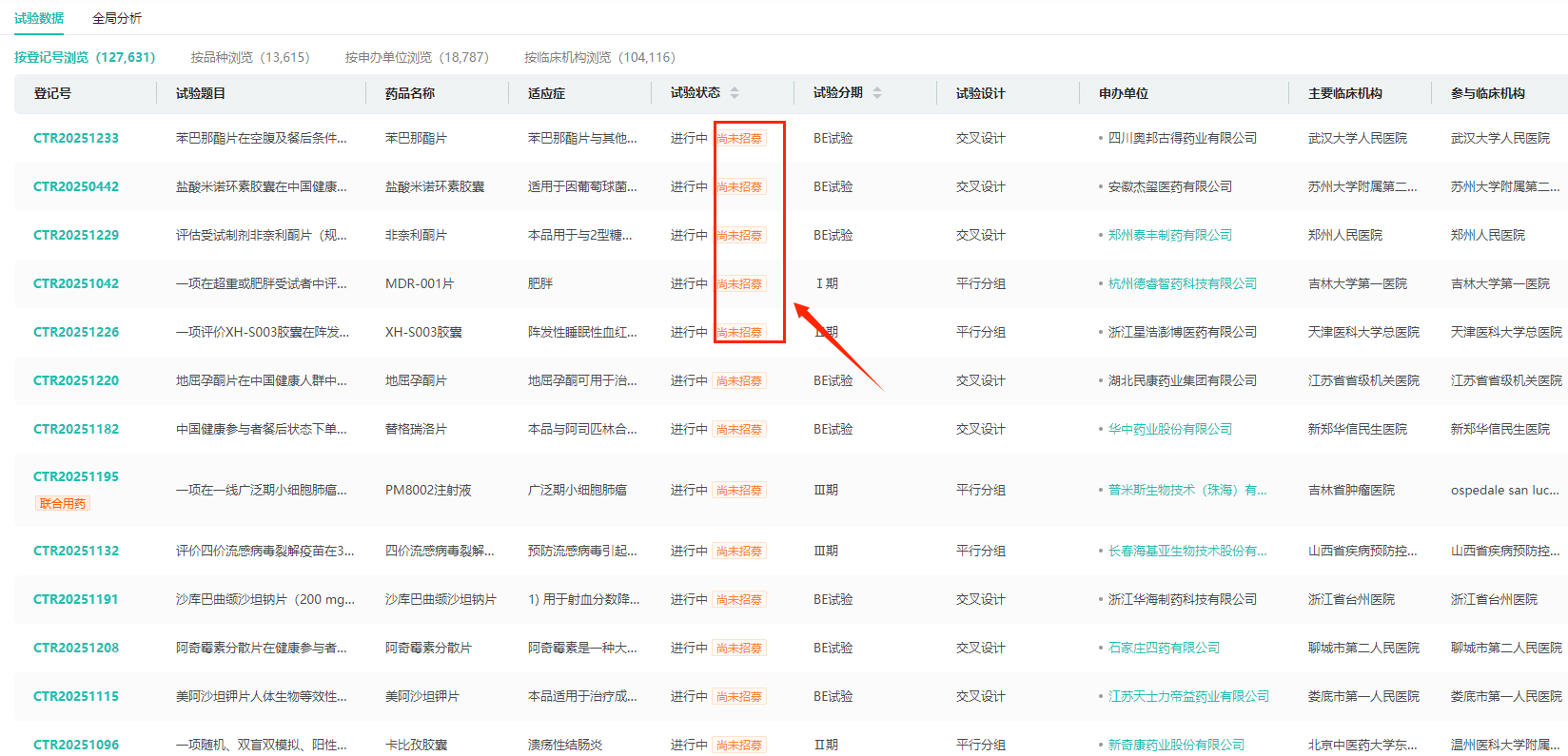 此外,检索结果页面还新增了试验状态标签显示功能,使试验进度一目了然,进一步提升了信息获取的效率。