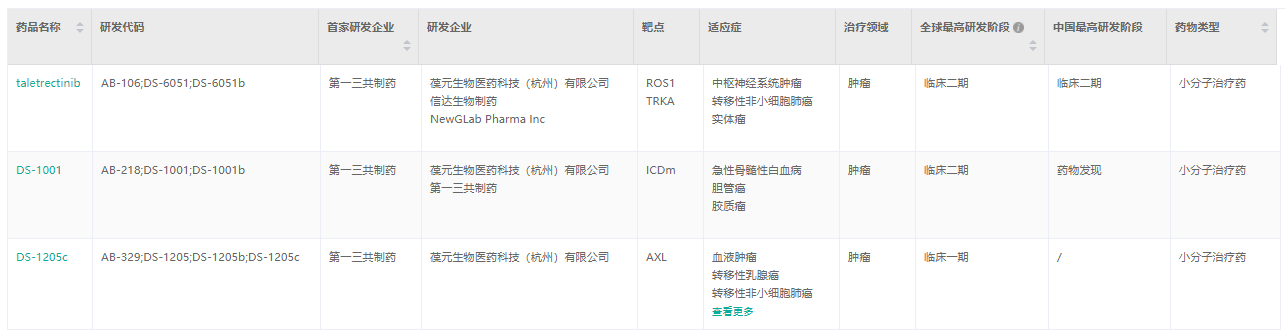 经药融云查询,葆元医药产品管线除他雷替尼外,还有两款药物在研。DS-1001,ICDm靶点,针对胶质瘤的适应症处于临床二期试验阶段;DS-1205c,AXL靶点,针对转移性非小细胞肺癌、转移性乳腺癌、卵巢肿瘤的适应症处于临床一期试验阶段。