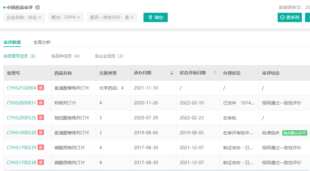 针对DPP-4抑制剂,科伦药业已递交了4个品种的上市申请,其中,磷酸西格列汀片、利格列汀片和此次的琥珀酸曲格列汀片已经获批上市。