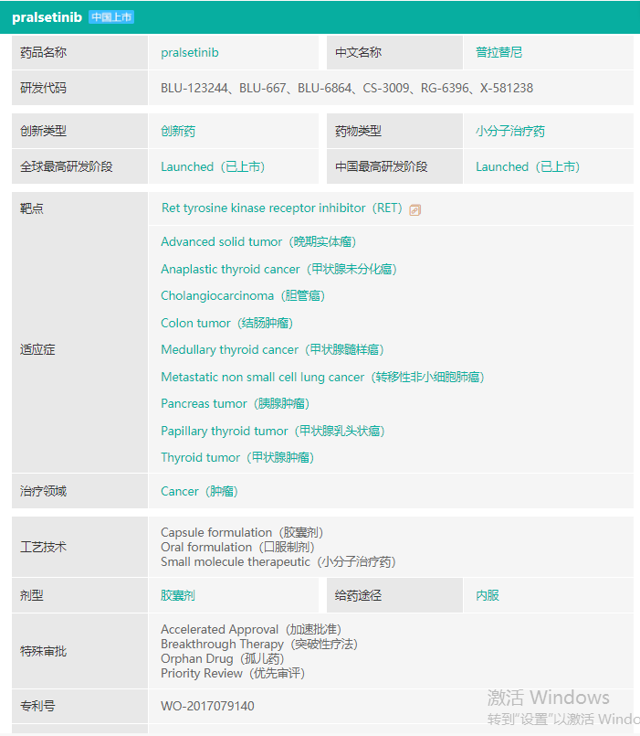 普拉替尼基本信息