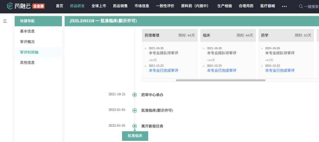 ▲药融圈旗下,药融云临床试验数据库,时间轴界面