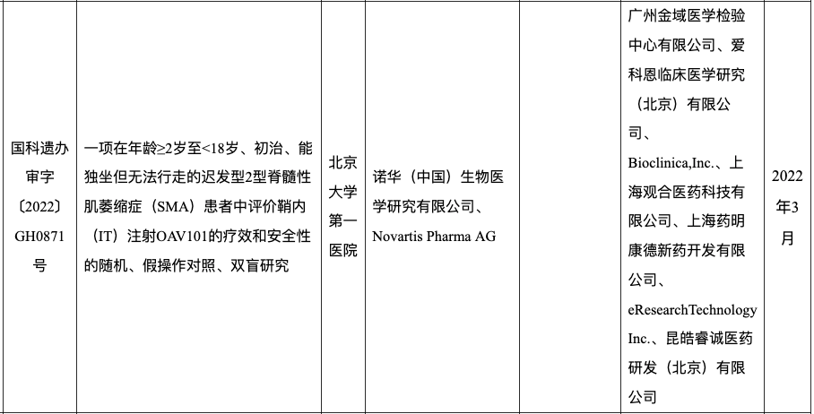 2021年10月21日,诺华制药在中国递交基因疗法Zolgensma(onasemnogene abeparvovec-xioi,AVXS-101)OAV101注射液临床试验申请获得CDE受理公示,用于治疗脊髓性肌萎缩症(SMA)。药融云数据https://www.pharnexcloud.com/?zmt-mhwz显示:2022年1月1日,CDE已批准Zolgensma(OAV101注射液)在中国进行临床试验,本次IND审评历时约64天。