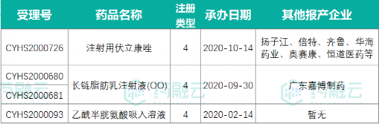目前,丽珠集团以仿制4类报产了注射用伏立康唑、长链脂肪乳注射液(OO)和乙酰半胱氨酸吸入溶液,这3款品种均暂无企业过评,丽珠集团有望抢仿制药首家过评。