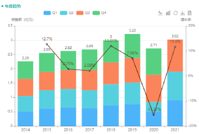 据药融云数据库统计,克拉霉素片近年院内销售额在3亿元左右,丽珠集团为该品种的生产企业TOP10榜首。以2021年前三季度为例,丽珠集团拥有近6成的市场份额,其次雅培、广东东阳光、浙江贝得等企业占据份额较多。