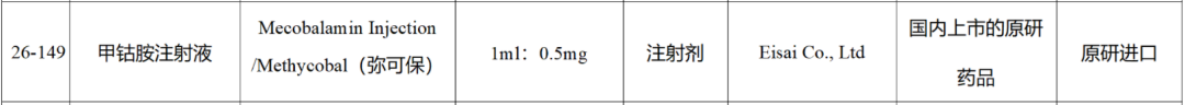 根据国家局发布的仿制药参比制剂信息,卫材弥可保为参比制剂。关于甲钴胺注射液的参比制剂可见仿制药参比制剂目录(第二十六批)。