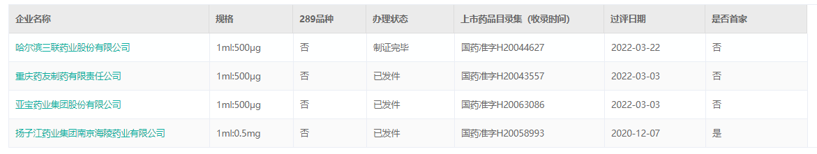 其中,哈尔滨三联药业斩获甲钴胺注射液仿制药第四家过评,此前已有重庆药友制药有限公司(2022-03-03)、亚宝药业集团股份有限公司(2022-03-03)、扬子江药业集团南京海陵药业有限公司(2020-12-07)。其中,扬子江药业集团为该品种仿制药首家过评。