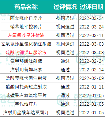 扬子江药业2022年过评品种(标红为仿制药首家过评品种)