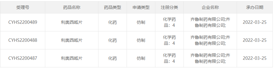 3月25日,齐鲁制药递交的利奥西呱片上市申请获CDE受理。该品种为拜耳独家治疗肺动脉高压品种,2021年同比暴涨275%,此次齐鲁制药为首家报产该品种的企业。