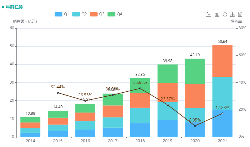据药融云统计,2021年我国造影剂市场出现较大增长,前三季度销售额近150亿元,同比增长71%,年销售额有望突破200亿元。而恒瑞医药则稳坐造影剂市场龙头宝座,2020年造影剂院内销售额超40亿,2021年还将再创新高。