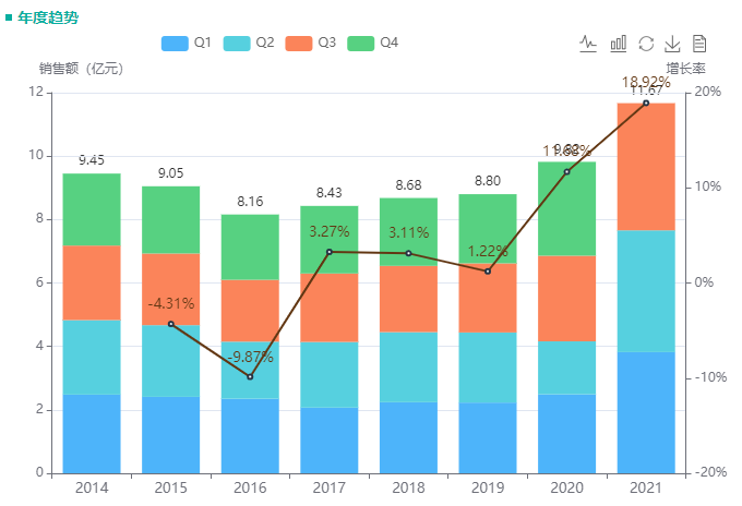 非洛地平在国内已上市多年,获批剂型有普通片剂、缓释片、缓释胶囊等。其中,缓释片为主力剂型,市场份额达98%,其院内销售额近两年增长强劲,仍处于上升期。据药融云数据统计,非洛地平缓释片2021年前三季度院内销售额已突破十亿元大关,达到近12亿,同比增长70%。按照如此增长趋势,预计全年销售额可达超15亿元。