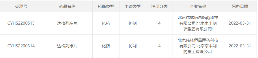 3月31日,北京伟林恒昌医药/北京京丰制药递交的达格列净片上市申请获CDE受理。至此,除原研外,国内共有11家企业报产该品种,其中已有山东鲁抗医药和北京福元医药获批生产。达格列净片是全球首个用于治疗2型糖尿病、国内首个获批的SGLT2抑制剂,大涨300%,18亿降糖药!