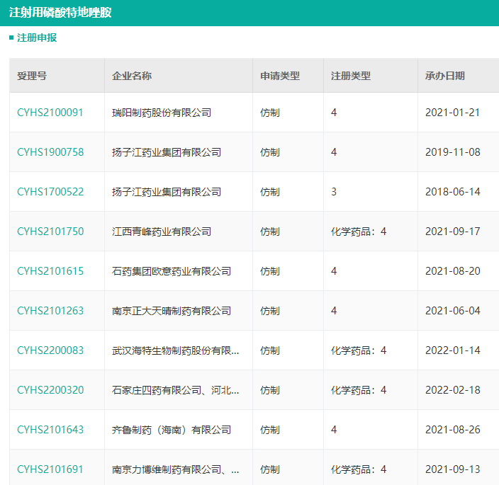 此前,该药由原研独家销售,此次扬子江药业为国内首个获批生产磷酸特地唑胺仿制药的企业。据药融云查询,齐鲁、石四药、正大天晴、石药欧意等8家企业也相继递交了注射用磷酸特地唑胺的仿制药上市申请,磷酸特地唑胺片剂的首仿之争相对较小,目前仅福元医药和南京正大天晴递交了上市申请。