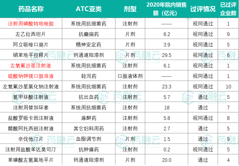 扬子江药业2022年过评品种(标红为首家过评)