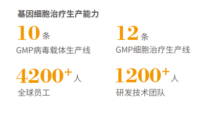 公司建立了质粒、病毒载体、细胞治疗、基因治疗、核酸疗法等CRO和CDMO平台,拥有总面积超过20000平方米的研发与生产基地、10条病毒载体生产线、12条GMP细胞治疗生产线(含2个阳性生产车间),以及上百个洁净车间。