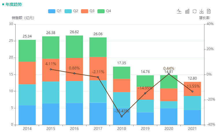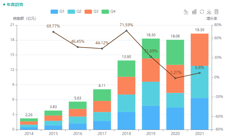 替加环素为惠氏制药有限公司研究开发的甘氨酰四环素类抗菌药物,于2005年6月首次在美国上市。2010年11月,注射用替加环素获准进口上市。据药融云统计,2021年前三季度,注射用替加环素便已斩获院内销售额19亿元,同比增长48%,市场还有不少上升空间。