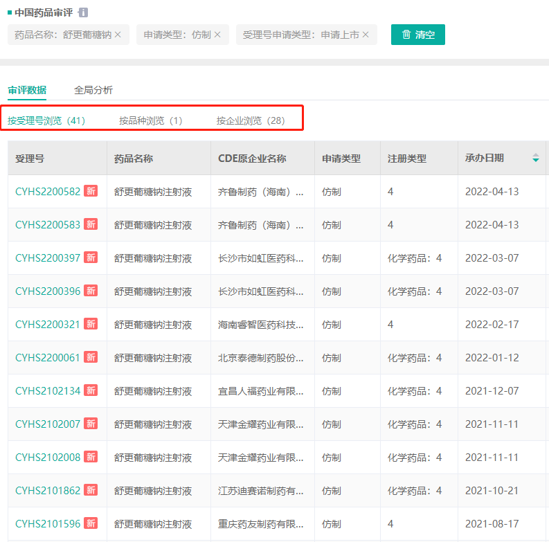 舒更葡糖钠注射液仿制竞争激烈,既拼质量也拼速度。据药融云数据库,除此次顺利获批的扬子江药业外,还有20余家企业扎堆递交舒更葡糖钠仿制药上市申请,其中不乏齐鲁制药、恒瑞医药、南京正大天晴、人福药业等多家明星药企,但均未获批(发放通知件,或尚在审批审批中)。