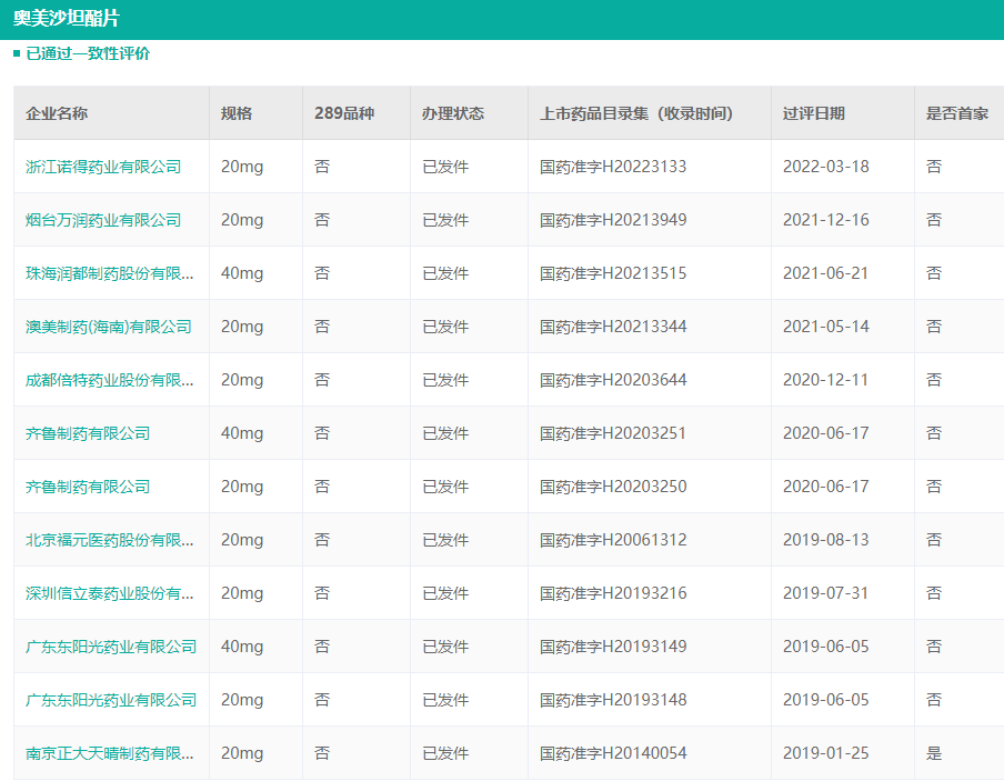 奥美沙坦酯片过评企业(截至2022.04.14)
