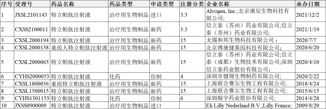 特立帕肽市场格局上市情况