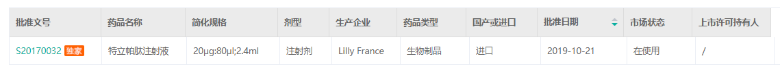 特立帕肽注射液批文信息