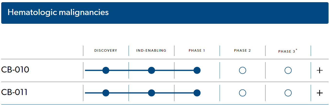 通过延迟数据读取,这两个项目将能够从随访时间较长的患者那里积累更多数据。对于CB-010,该公司预计将获得多达10名接受CD19靶向治疗后复发的患者的研究数据。