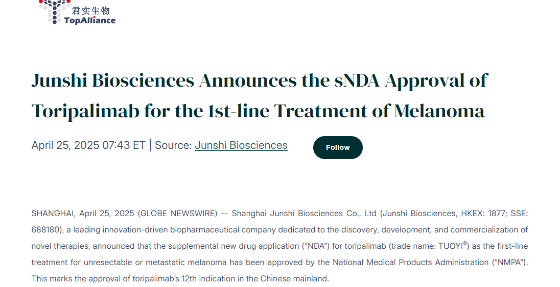 本次新适应症的获批主要基于MELATORCH研究(NCT03430297)的数据结果。