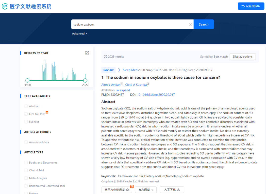 有文献检索需求的用户,可在药融云企业版V4.0上方进入药融云医学文献检索系统,快速检索全球专业医药文献,并提供全文下载和文献求助服务!