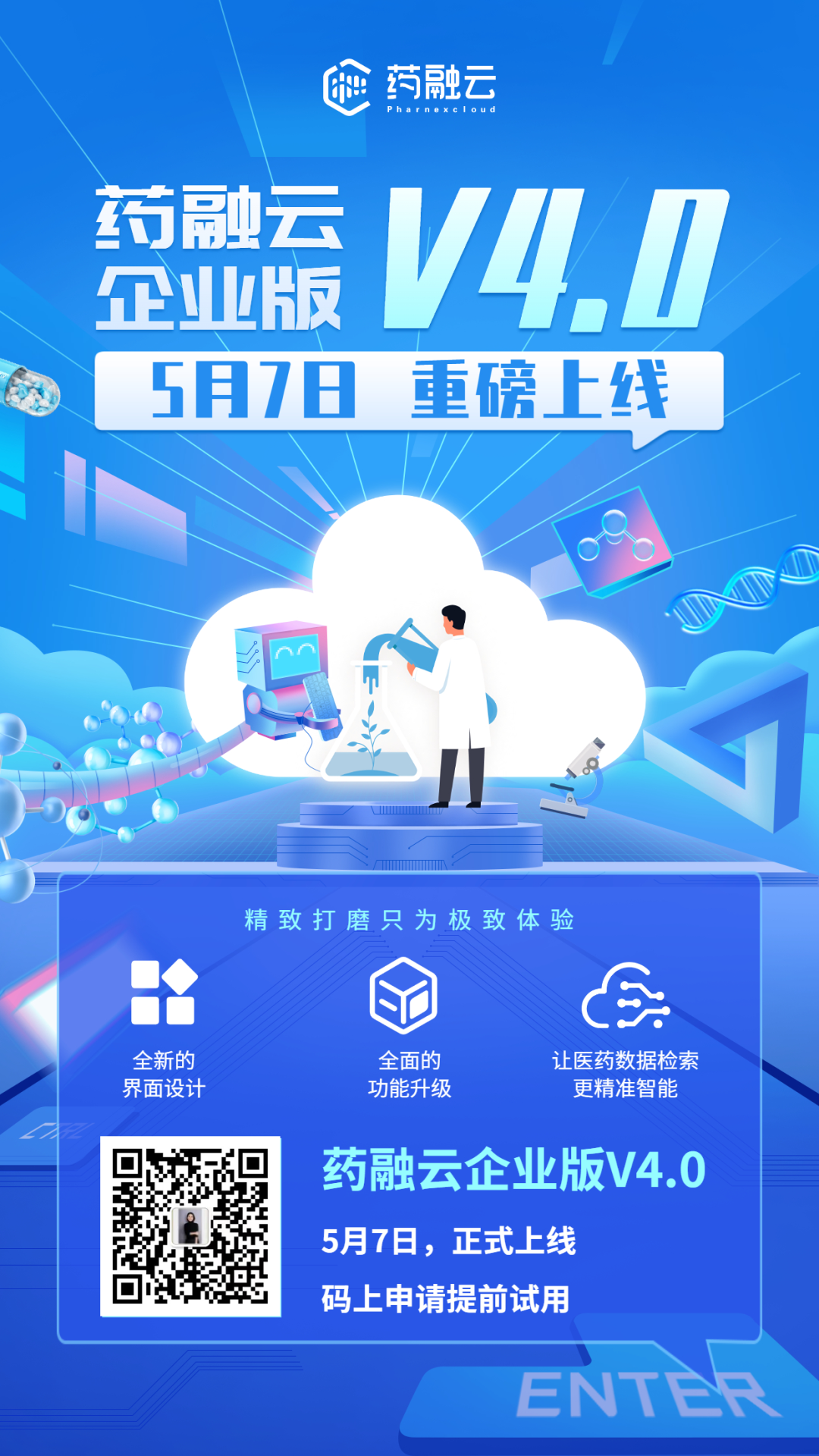 每一次升级,都是一次蜕变。药融云AI智能大数据系统2022年重磅升级,药融云企业版V4.0将于5月7日正式全新上线,敬请期待!