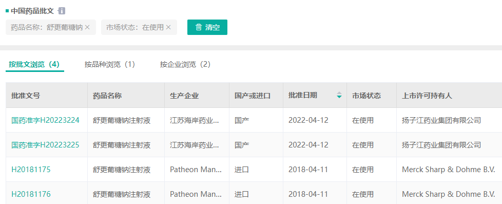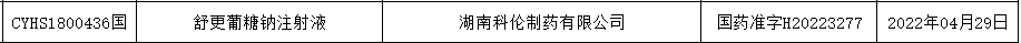 舒更葡糖钠注射液批文(截至2022.05.06)
