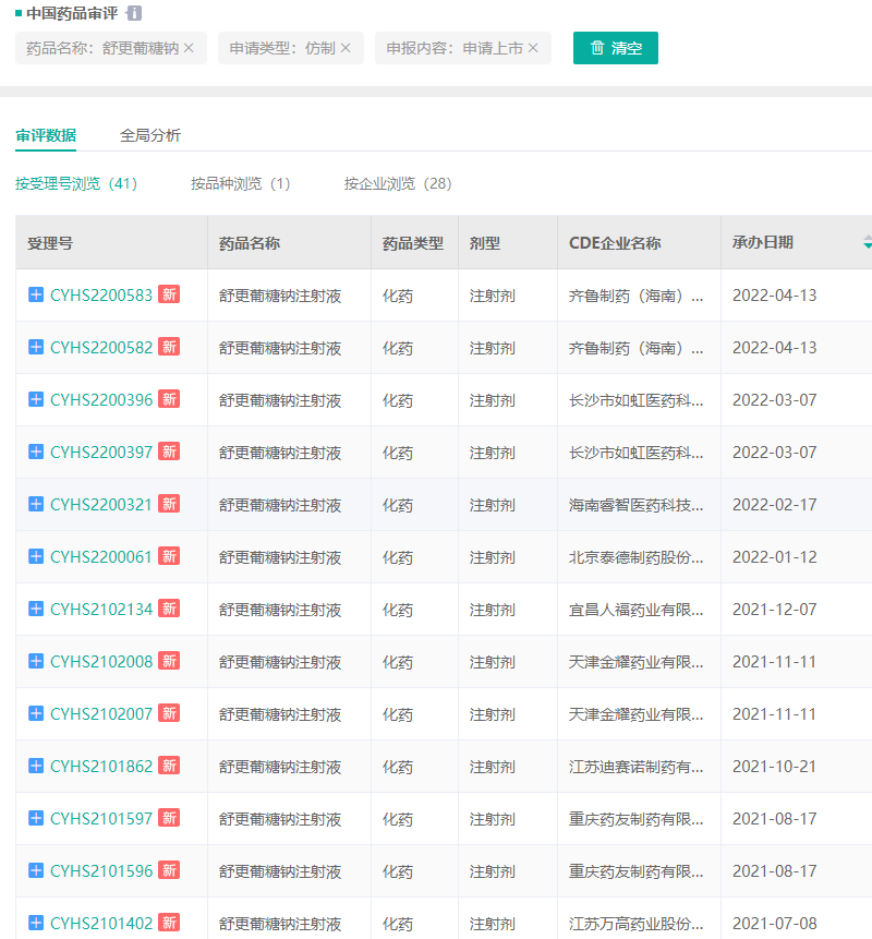 舒更葡糖钠注射液部分报上市企业