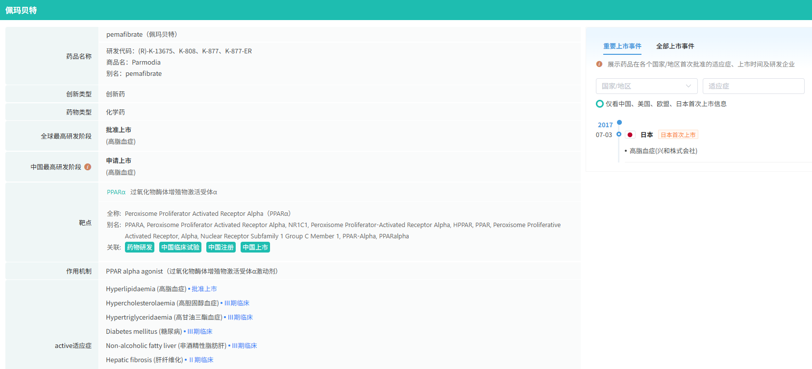 2025年04月14日,日本兴和制药的佩玛贝特片在中国获批上市,用于治疗高脂血症(包括家族性高脂血症)。摩熵医药曾预测该品种仿制跟进速度会极其快,(详见相关扩展阅读:降脂新药佩玛贝特片中国获批!21家仿制企业“围剿”,首仿之争一触即发)