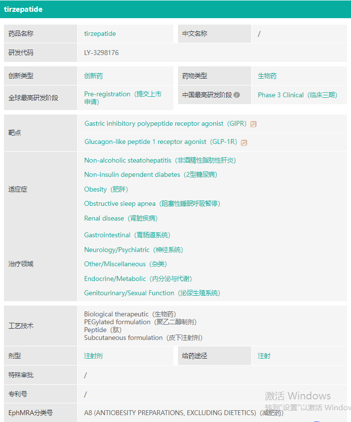 据药融云数据库显示,Tirzepatide(商品名:Mounjaro™)为每周一次GLP-1R/GIPR双重受体激动剂。5月13日,礼来宣布获FDA批准上市,用于 2 型糖尿病,属于同类首款。在去年 10 月,礼来宣布使用优先审评券提交了 Tirzepatide 的上市申请,如今仅隔不到 7 个月,这款潜在重磅炸弹就获得 FDA 批准进入市场。