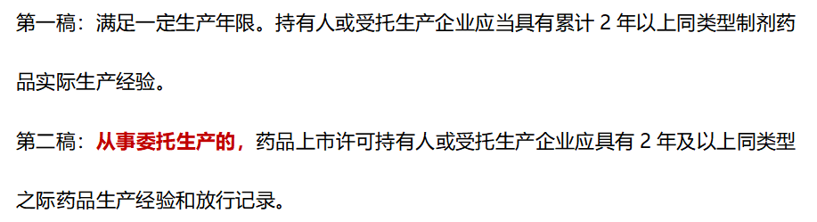 这条直接针对“A转B”。意味着,自行生产企业可因产能不足新增受托方,但不得通过委托形式将批文转给其他持有人。