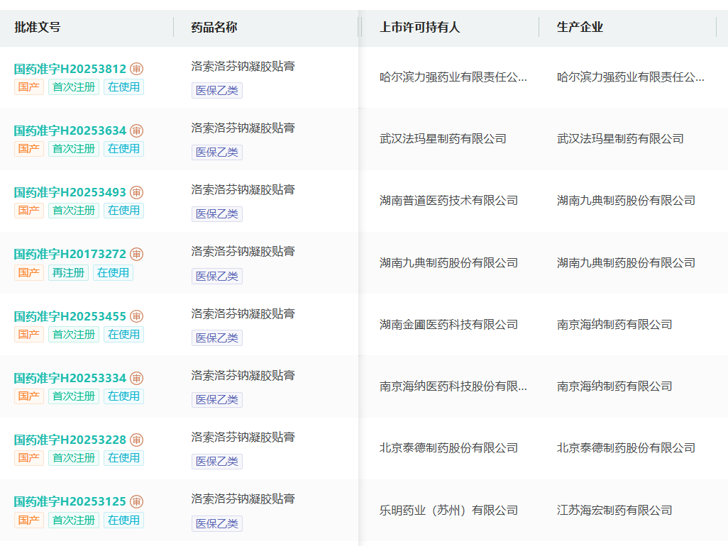 这一变化将直接影响企业参采资格。以最近密集过评的洛索洛芬钠凝胶贴膏为例,若按第一稿的要求,除了九典和泰德有两年同剂型生产经验之外,其他企业不论自行生产还是委托生产,均不符经验要求。