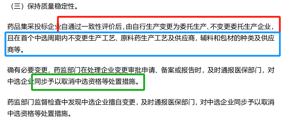 此外,首个中标周期内,不得变更生产工艺、原辅包的种类及其供应商。必须要变更的,变更审批同时予以取消中选资格。