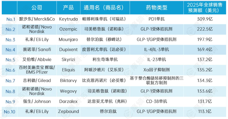 此榜单不仅反映了当前疾病负担的转变(从肿瘤向代谢疾病倾斜),也揭示了药企通过适应症扩展、剂型改良(如Keytruda皮下注射剂型)和全球化合作(如信达与礼来)维持竞争力的策略。未来,代谢与免疫领域仍将是研发投入的核心战场。