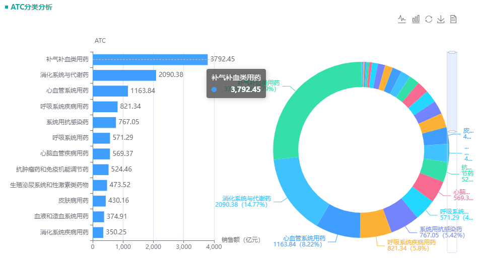 药融云全国药店零售数据为大家提供数据的初步全局分析,可快速阅览销售额年度趋势、药品/活性成分/剂型TOP10、生产企业TOP10,还可快速了解各给药途径、ATC分类的分布情况。