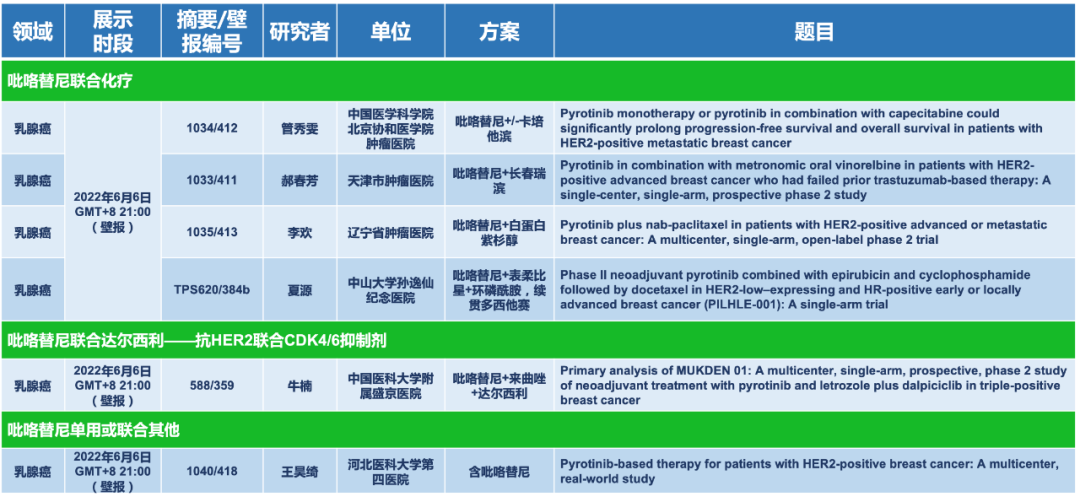 吡咯替尼联合方案治疗乳腺癌,共有6项研究接收为壁报。