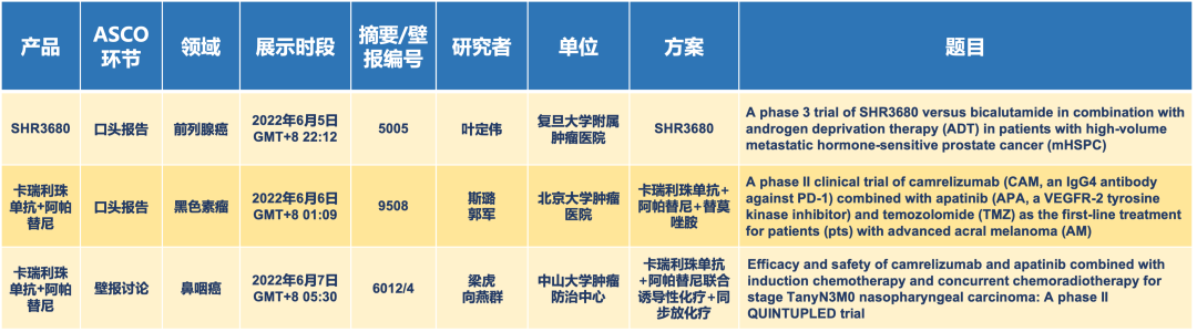 2022 ASCO恒瑞医药共有两项研究入选口头报告环节,另有一项研究入选壁报讨论环节。