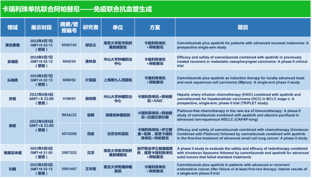 “双艾”方案单独或联合系统治疗或局部治疗在黑色素瘤、鼻咽癌、头颈肿瘤、肺癌、肝癌、胰腺癌、妇瘤等领域共有8个研究接收为壁报。