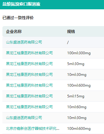 盐酸氨溴索口服溶液仿制药已过评企业