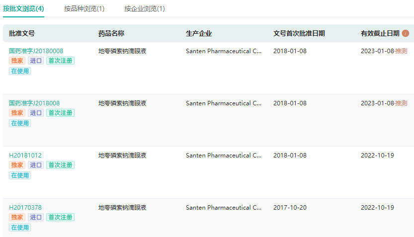 地夸磷索钠批文(截至2022.05.26)