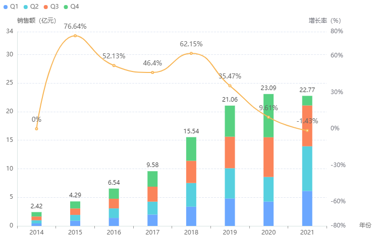 根据药融云全国医院销售数据的数据显示,恒瑞医药碘克沙醇注射液已经呈现负增长的趋势,2021年第四季度销售额下滑非常明显。随着集采结果的落地,国内造影剂龙头将会受到不小的撼动。