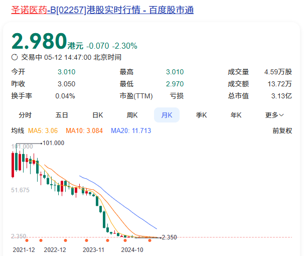 圣诺医药成立于2007年,2021年成功登陆港股,曾被誉为“中国核酸药物第一股”,三年后,公司情况直转而下。先是公司两位核心股东遭遇质押式减持。2024年3月,创始人陆阳所持有的1.78%股份,以及第二大个人股东戴晓畅所拥有的7.58%,都将被先质押后强制出售方式减持,引起公司股价一波大跳水。而后7月,圣诺医药因为理财投资计提了近2000万美元的损失。
