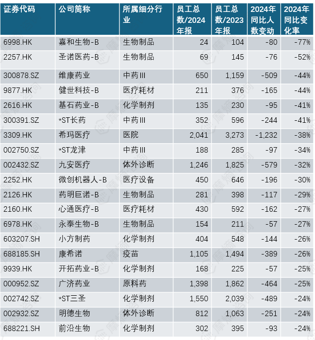 随着2024年年报的披露完毕,打工人关心的2024年哪些企业员工人数减少最多,我们来一一揭晓。