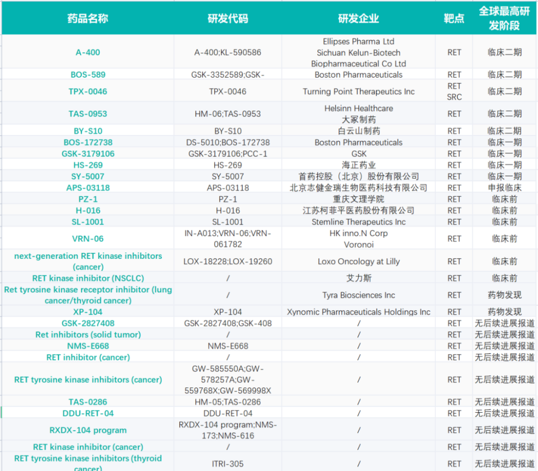 RET抑制剂药物研发现状
