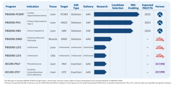 图:Precision BioSciences公司的基因编辑研发管线