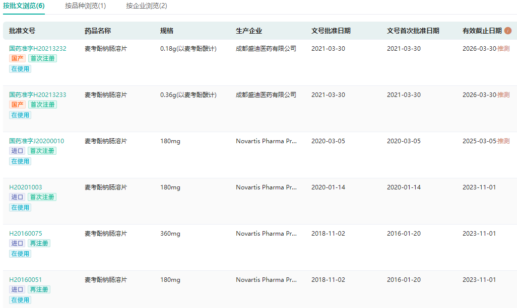 麦考酚钠批文