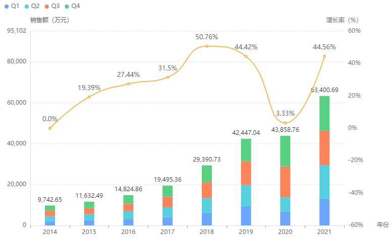 据药融云统计,二甲硅油相关制剂的院内销售情况总体呈持续递增趋势,2021年销售额达到最高,超6.3亿元,同比增加44.6%。